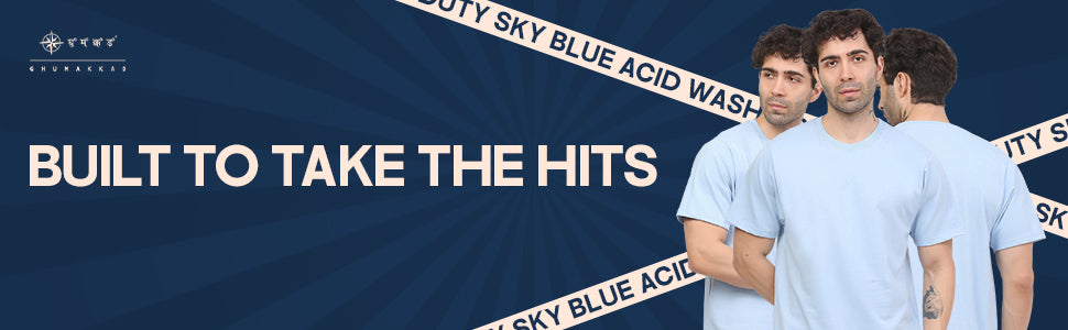 This sky blue heavyweight tee brings chill energy with a tough edge.